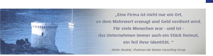 Leitbilder verankern Werte und Ziele des Unternehmens in verständlicher und verbindlicher Form. Sie sind wie eine „Leitplanke“, an der sich der Weg des Unternehmens orientiert. Nur ein überzeugendes, bei Mitarbeitern fest verankertes und von ihnen gelebtes Leitbild kann erfolgreich als Richtungsweisung dienen. Gerade deshalb ist die Entwicklung gemeinsam mit den Mitarbeitern unerlässlich.